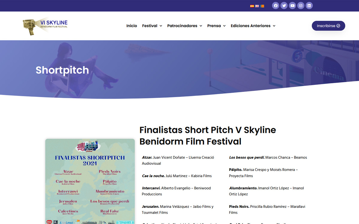 El Short Pitch es una actividad ligada al Festival de cine SkylineFilm Festival de Benidorm. Un evento de industria en el que 12 proyectos compiten por el premio al mejor cortometraje en desarrollo.